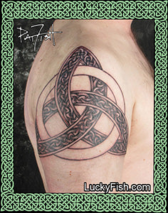 Pat Fish has specialized in Celtic tattooing since 1984, and has designed each original image in this collection specifically to be an effective tattoo. Many of the designs are inspired by her research into the illuminated manuscripts and carved standing stones in Ireland, Scotland, and the rest of the British Isles. Patterns have been chosen for their strong symbolism, aesthetic appeal, and suitability for the tattoo medium. You can learn more about Pat Fish HERE. Her studio's main website is LuckyFish.com (you are currently browsing LuckyFishArt.com).