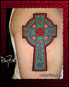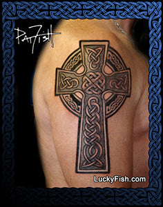 Pat Fish has specialized in Celtic tattooing since 1984, and has designed each original image in this collection specifically to be an effective tattoo. Many of the designs are inspired by her research into the illuminated manuscripts and carved standing stones in Ireland, Scotland, and the rest of the British Isles. Patterns have been chosen for their strong symbolism, aesthetic appeal, and suitability for the tattoo medium. You can learn more about Pat Fish HERE. Her studio's main website is LuckyFish.com (you are currently browsing LuckyFishArt.com).